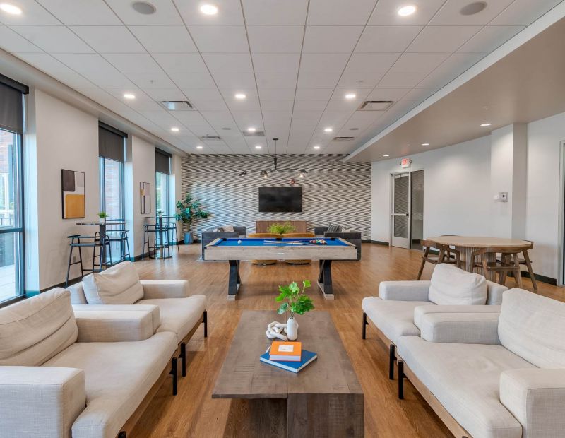 From friendly pool tournaments to movie nights on the big screen, this is where downtime meets good company. The game room at District Flats is your go-to spot for laughter, relaxation, and connection—complete with cozy seating, bold design, and plenty of room to play.